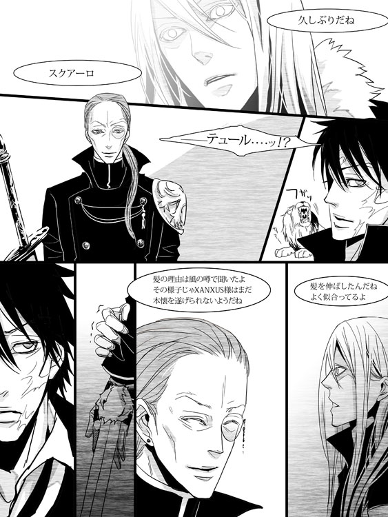 風の噂なわきゃーないので白蘭さんあたりが「ヴァリアーの副長の彼と知り合いなの?ああそうあのド淫乱18年髪伸ばしてるらしいよXANXUS君がドンになるまで切らないらしいよ忠誠ってかただの馬鹿でしょ馬鹿だよね?何可愛い?ああそうニヤついてんじゃねーよこのオイボレアハハきもいってきもいのは私じゃああぁあえバッカじゃねーのバッカじゃねーのバッキャローネないわないわーこんなテュール小指で倒せるわ私の小指で倒せるわ